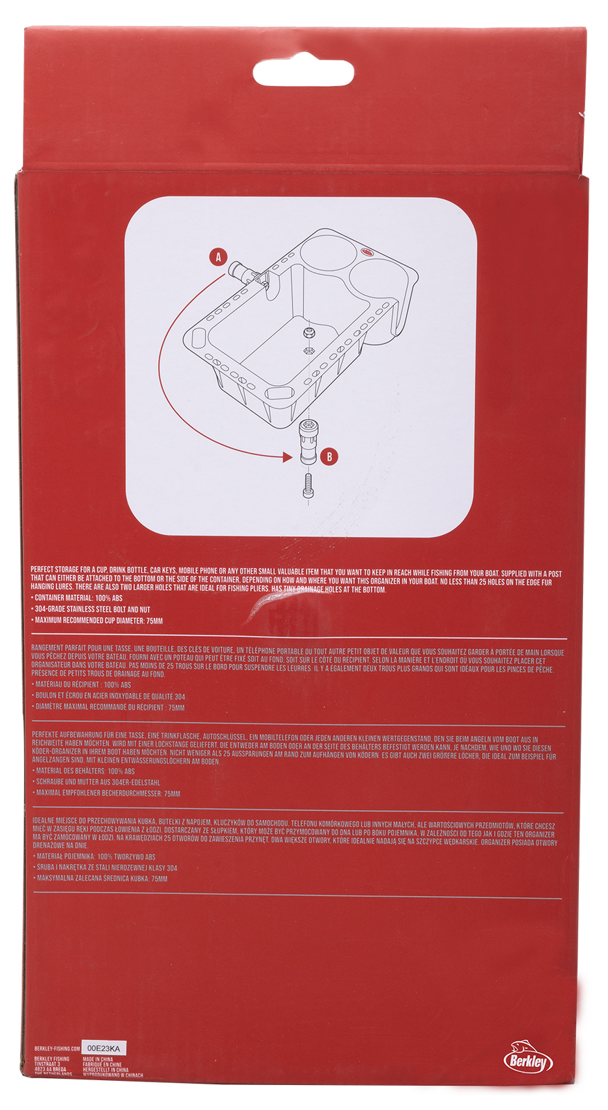 Extras: 25 lure-hanging holes; 2 large tool holes; base drainage holes