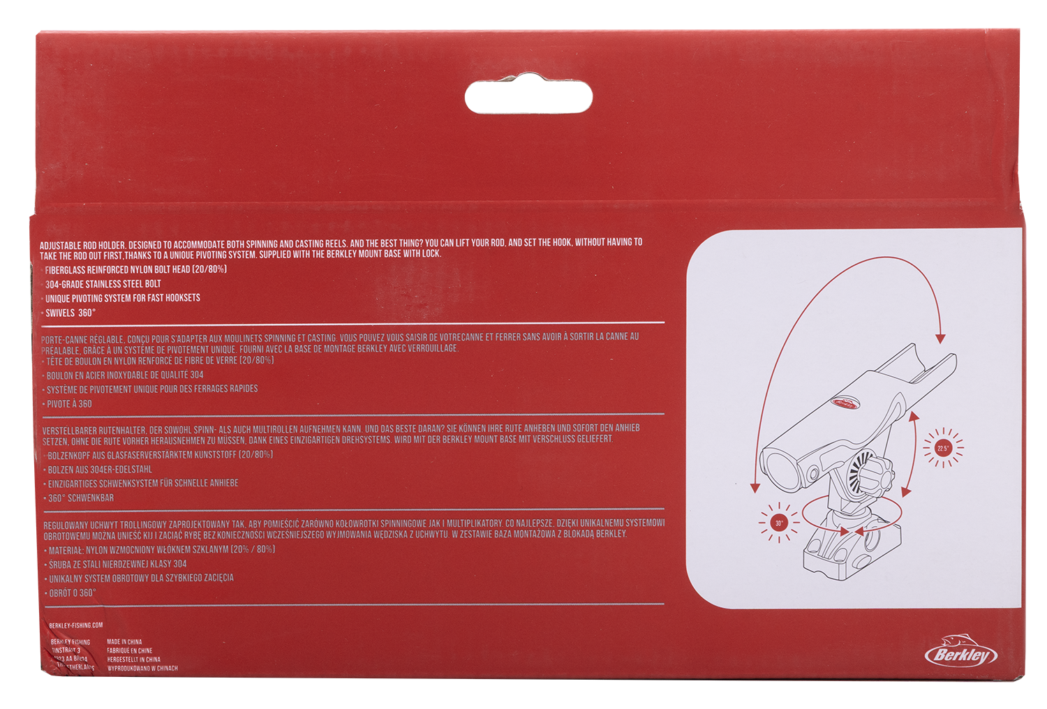 Built for boats that demand reliability and speed, the Berkley Fishin’ Gear Quick Draw Rod Holder secures spin or baitcast outfits and frees up your hands while you troll, bait up or drive the boat. A unique pivoting yoke lets you sweep the rod up and load the blank instantly for quick hooksets, while the 360° base rotation helps you fine-tune rod angle to current, wind and lure track. Supplied with the Berkley mount base (with lock) for safe, rattle-free use on the gunnel — side or top mounted.