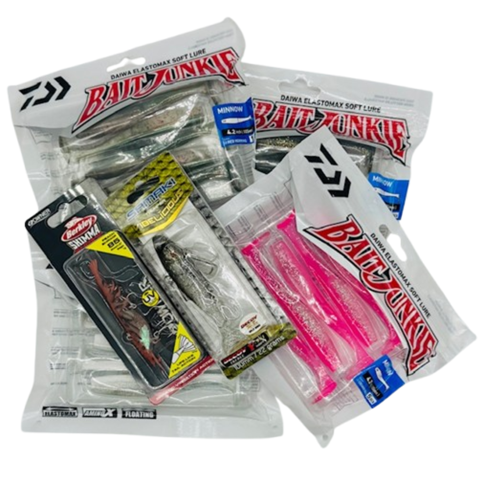 This is the kind of bundle that makes it easy to adapt on the fly—whether you’re working channel edges, drop-offs, bridge pylons, rock walls, mud flats, or snags and pontoons. When fish want a hard-hitting bite trigger, you’ve got vibes that pulse and thump on the lift and drop. When they’re feeding more selectively, the Bait Junkie minnows deliver a realistic rolling action and boot-tail kick that gets eaten by quality fish.