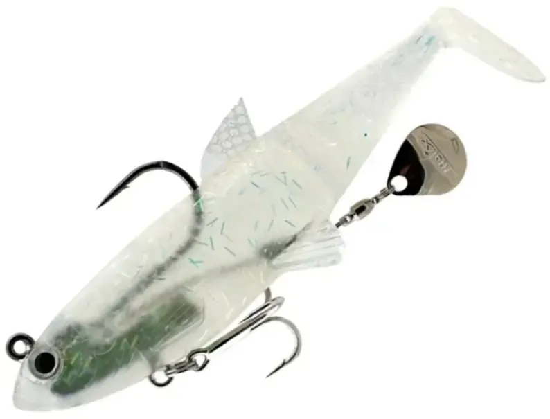 It is a soft swimbait, jointed for the great predators that live in deeper waters where jerk baits and spinnerbaits don’t arrive and where a traditional soft bait struggle to be attractive. The high frequency vibrations, produced by the blade inserted under the belly, recall even the fishes that swim far from this lure , even in murky waters. The position of the ring in the head allows it to be used effectively also vertically. It’s made with a new blend that makes it resisten and durable.