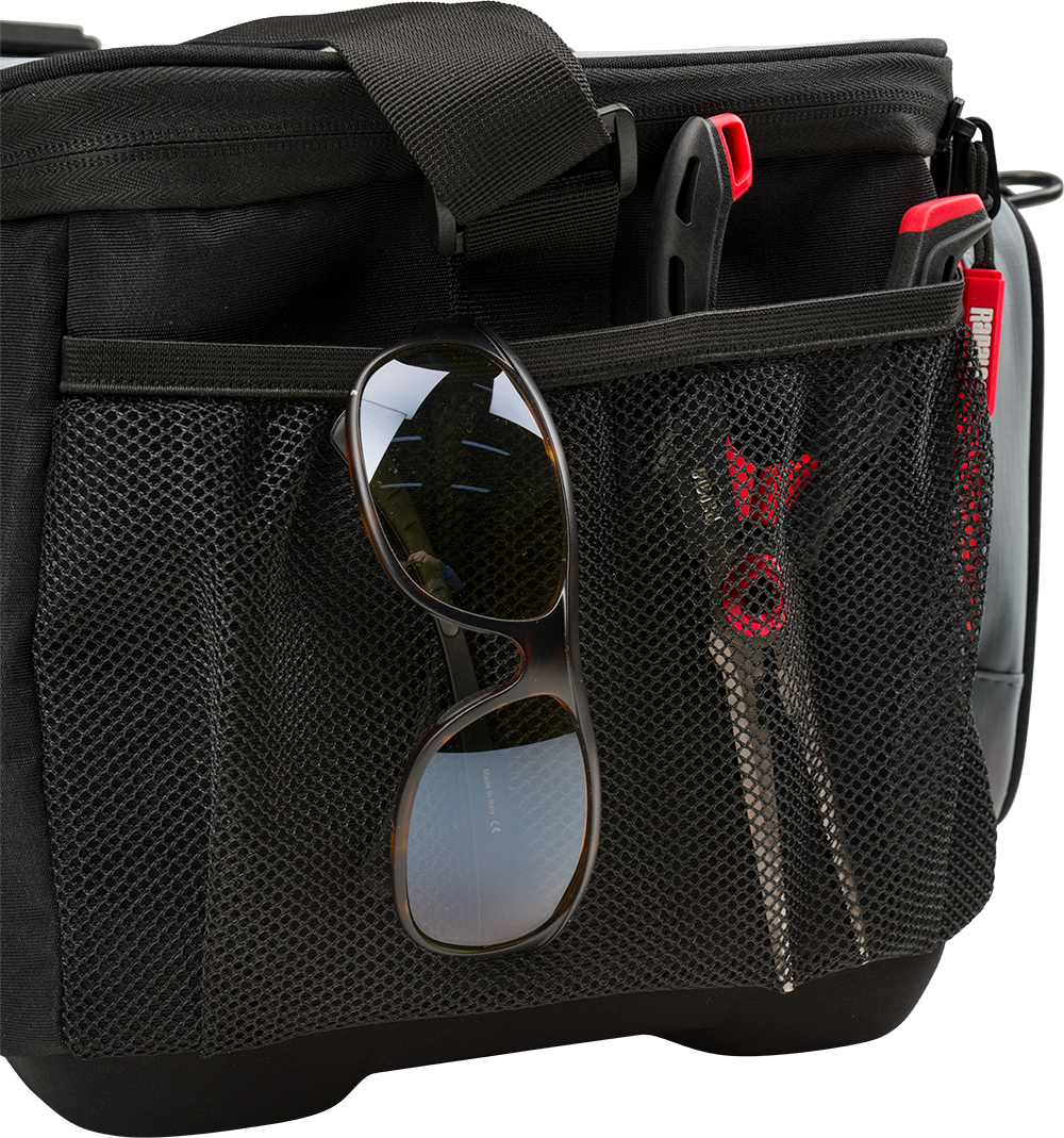 - Lid tray holder with clear zip pocket creates a fast, stable rigging station.