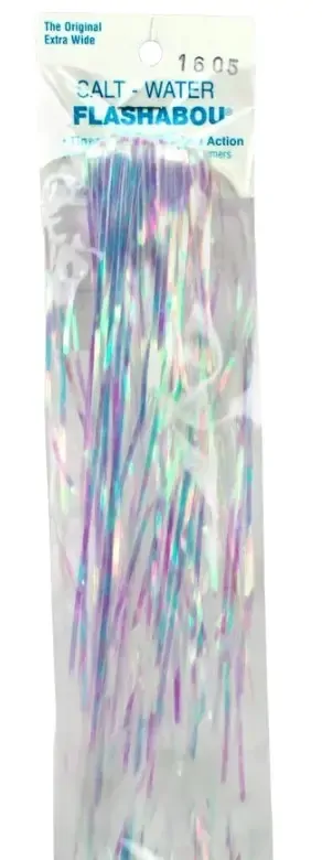 Saltwater Flashabou Extra Wide is a premium Mylar-based flash material designed specifically for saltwater lure makers, fly tiers and anglers who want maximum visual impact in their rigs. With its extra-wide 16mm strands and high-reflective finish, this flash produces a bold, shimmering profile that mimics the natural flicker of baitfish—making it ideal for targeting pelagics, reef species and estuary predators.