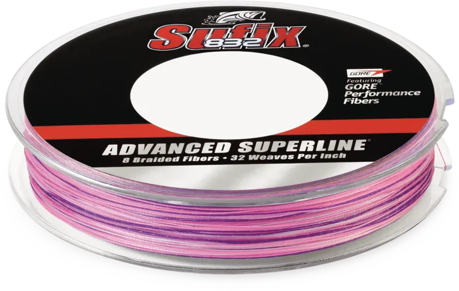 Cast further, feel more and fight harder. Sufix 832 is the industry benchmark in premium braided fishing line. Built from 8 fibres (7 HMPE + 1 GORE® Performance Fiber) and woven at 32 weaves per inch, it delivers exceptional abrasion resistance, roundness and sensitivity in a thin diameter. The high-contrast Pink Camo colour is easy to see above water for strike detection while remaining subtle against the surface glare.