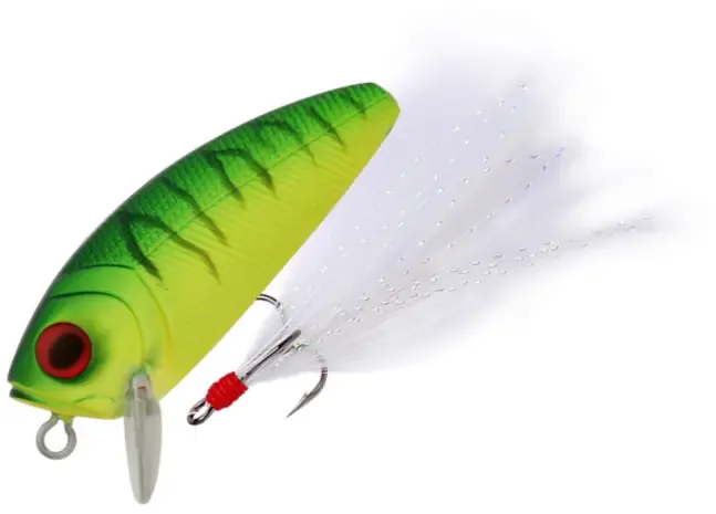 • Feathered rear treble hook – Adds visual attraction on twitch or pause